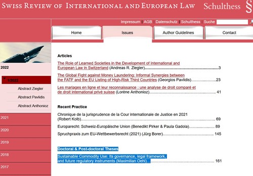 Issue 1/2022 of the Swiss Review of International and European Law (SRIEL) is out!