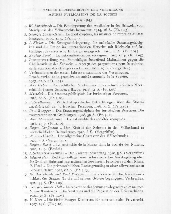 Von 1914 bis 1943 hat die SVIR eine Reihe von einzelnen Beiträgen in der Reihe "Druckschriften der SVIR" herausgegeben